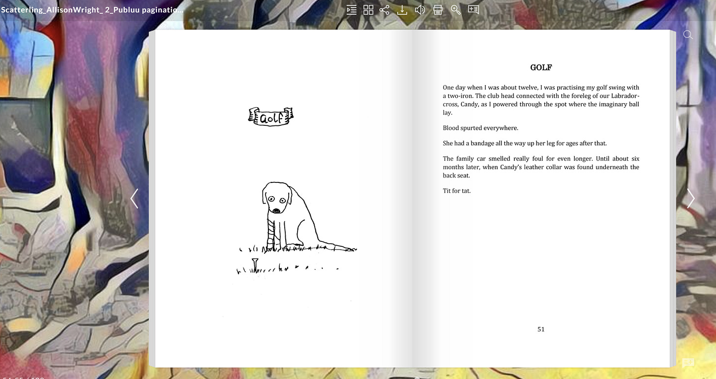 If you prefer golf-themed humour, then check out my vignette on the subject in Scatterling — A potted story of me so far, or simply scroll down for a screenshot of the page in question: