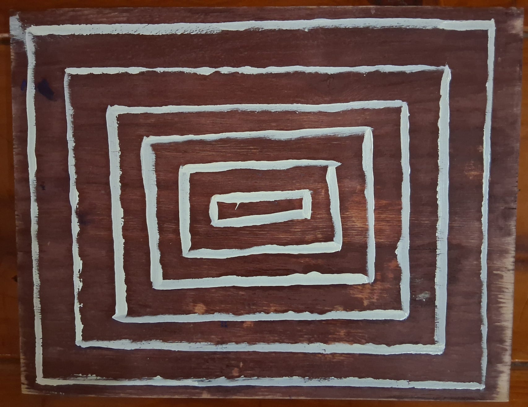 Two evenings ago, I felt a little better, so I used a paintbrush to test my competence at painting vertical lines freehand. This is quite different from using a pencil. It did not take that long. Each line in the image below was painted vertically, which means I turned the piece of plywood that I happened to have lying around 25 times to achieve the six approximate rectangles depicted below.